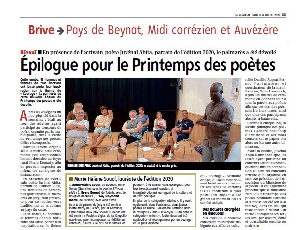 Le palmarès du Printemps des Poètes de Beynat a été publié dans le quotidien régional La Montagne.